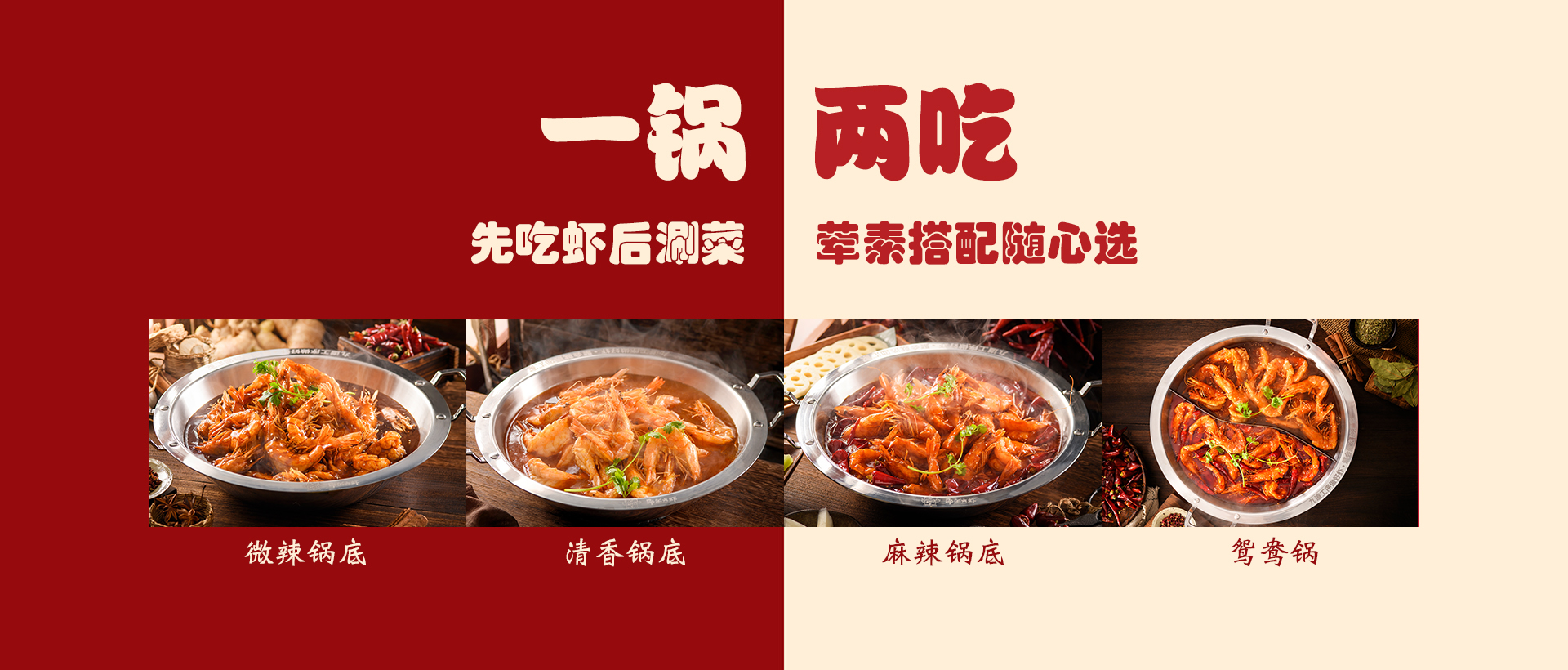 邵匯大蝦擁有強大的后勤保障部門,核心底料由公司中央工廠集中配送,食材精選進口大蝦,搭配秘制底料制作而成,研發(fā)出一鍋兩吃的飲食模式(先吃蝦后涮菜,葷素搭配隨心選),打造出綠色健康的飲食新文化。